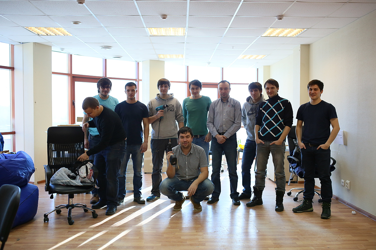 Маленький кабинет в ТЦ «Сфера», рассчитанный на десятерых, филиалом и уж тем более центром разработки назвать было сложно. Из мебели стояло только два стола, а технику, на которой работали, приносили из дома. Только спустя время в офисе появились серверная, мониторы, телефоны и принтер.
