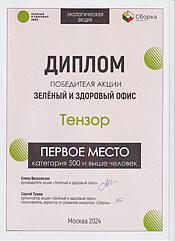 Экология для нас — значимая часть корпоративной культуры. Именно поэтому мы решили принять участие во всероссийской акции «Зелёный и здоровый офис 2024». В конце ноября наши коллеги ездили в Москву на награждение победителей. Тензор занял первое место в категории +500 сотрудников! Мы соревновались с такими сильными и достойными конкурентами как МТС, Яндекс Go и HeadHunter.