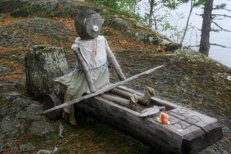 К середине похода погода наладилась, а в конце тензорян и вовсе ожидала настоящая награда –солнечные жаркие дни. Слово «день» здесь использовано не случайно, ведь ночью температура воздуха продолжала стабильно снижаться до осенних показателей. Все это время походники не только гребли, готовили еду и спали, но и отлично отдыхали, пели песни, а кое-кто даже пытался искупаться в ледяной воде. Однажды наша компания байдарочников высадилась на Острове Добрых Духов, где каждый уважающий себя турист должен оставить арт-объект, скульптуру, или на худой конец произведение кустарного искусства с названием своего города, посланием потомкам или отвлеченной абстрактной идеей. Оригинальное, знаете ли, местечко! :)