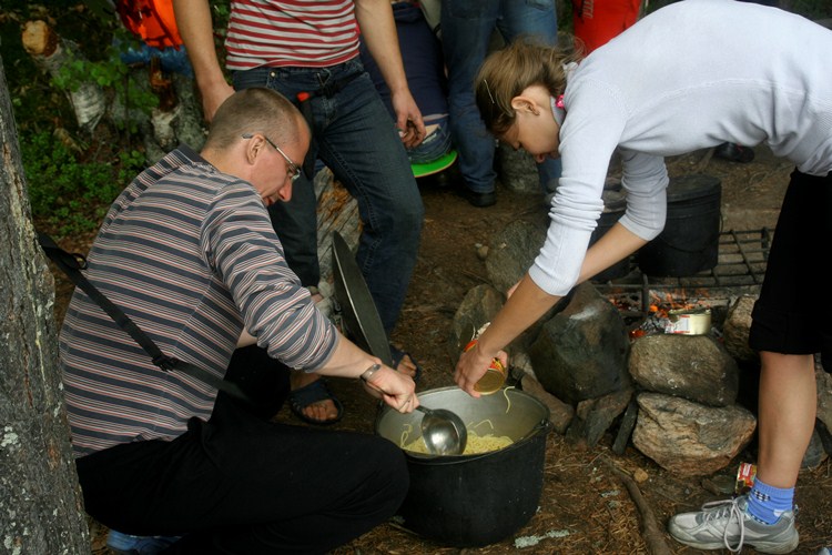 Но самое главное, семь карельских дней стали поводом ближе узнать своих коллег. В условиях походной жизни некоторые сотрудники «Тензора» раскрылись с новых сторон. Например, оказалось, что Александр Чеперегин, руководитель аналитического сектора, - замечательный рыбак. Очень часто он вместе с женой радовал уставших гребцов вкусными карасями, и несколько раз - потрясающей щукой! О музыкальных способностях программиста Дмитрия Семилетова многие знали еще до похода, но то, что другой программист, Александр Щукин, тоже хорошо играет и поет, стало открытием. Ольга Кудрявцева показала себя пунктуальным завхозом. Она всегда знала, где и какие продукты лежат. Среди тензорян отыскался даже человек с уникальным талантом: Дмитрий Кадыков единогласно был признан лучшим проектировщиком … веников для бани. :) Ну а генеральный директор Сергей Уваров оказался мастером на все руки. Ему под силу все: и байдарку собрать, и походную баньку соорудить, и блины испечь.