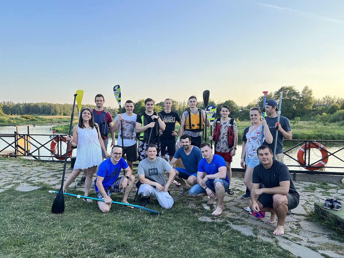 Сапы прочно удерживали первую строчку в хит-параде активностей. Пройтись по шёлковой глади Волги и Которосли, встретить закат на воде, а после – разжечь костёр, достать пледы и вдоволь наговориться/ насмеяться/ наполниться теплом – всё это выбрали коллеги из Отдела технологии и маркетинга, Службы персонала и Департамента разработки.