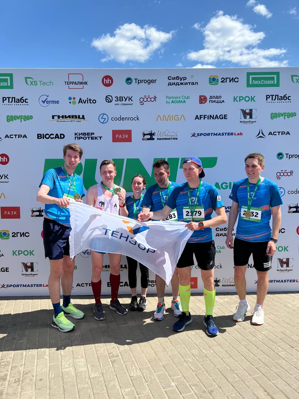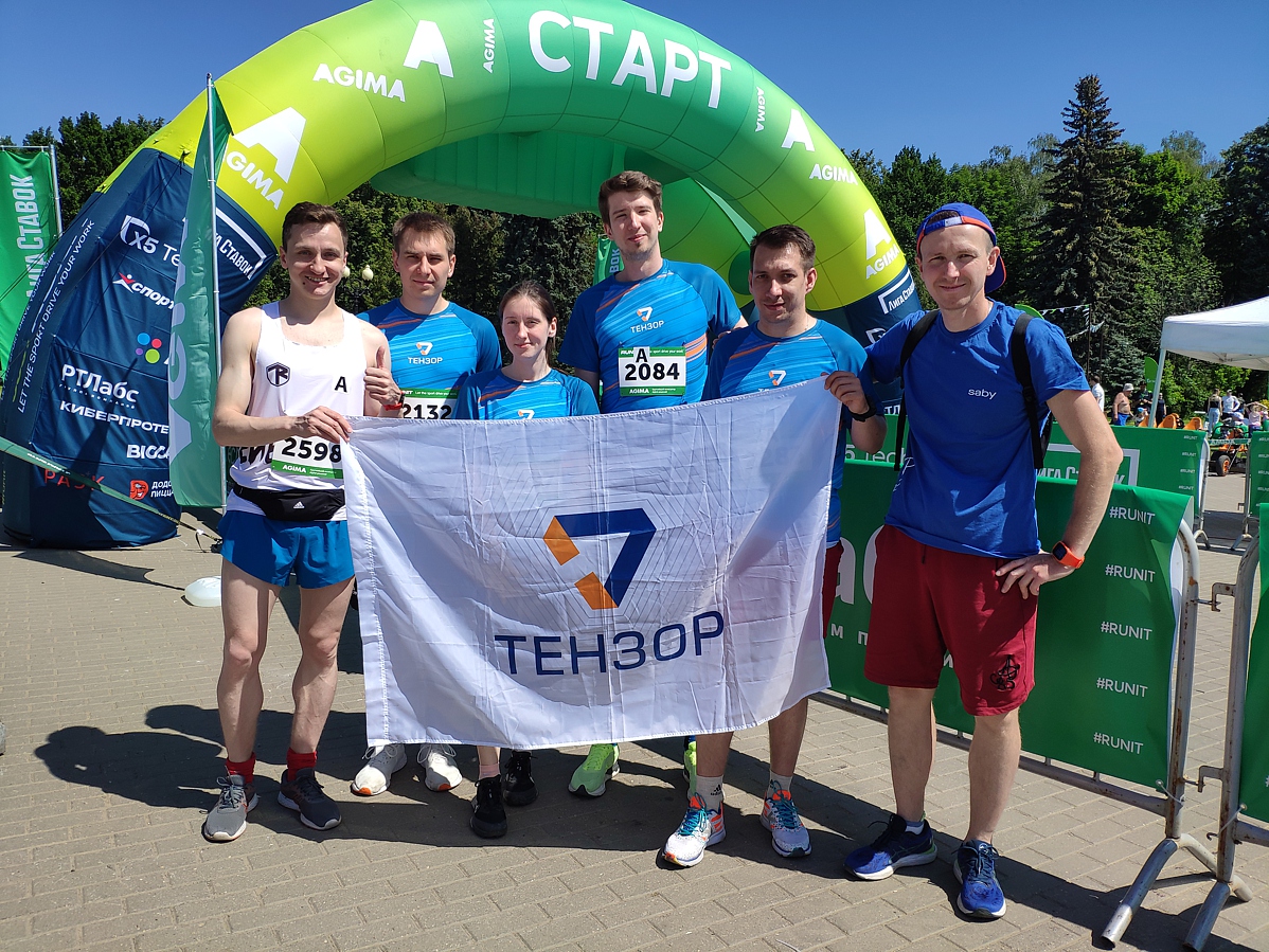 Компанию на забеге представляли Николай К., Андрей П., Алёна П., Олег Г. и Сергей З.. Неожиданно на старте команда встретила ещё одного тензоровца Ивана Ш. Он самостоятельно принимал участие в RUNIT.